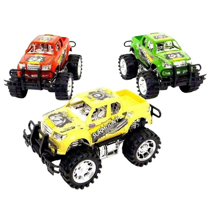Assorted plastic four wheeler truckĀ with retrsctable wheels.