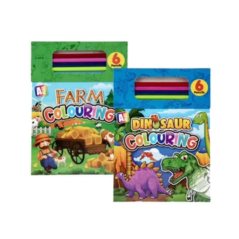 Assorted colouring book including six colouring pencil.