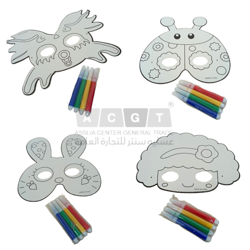 Insect themed cardboard cutout of a mask. It includes a string that can be attached to the mask and four markers to colour in the mask.