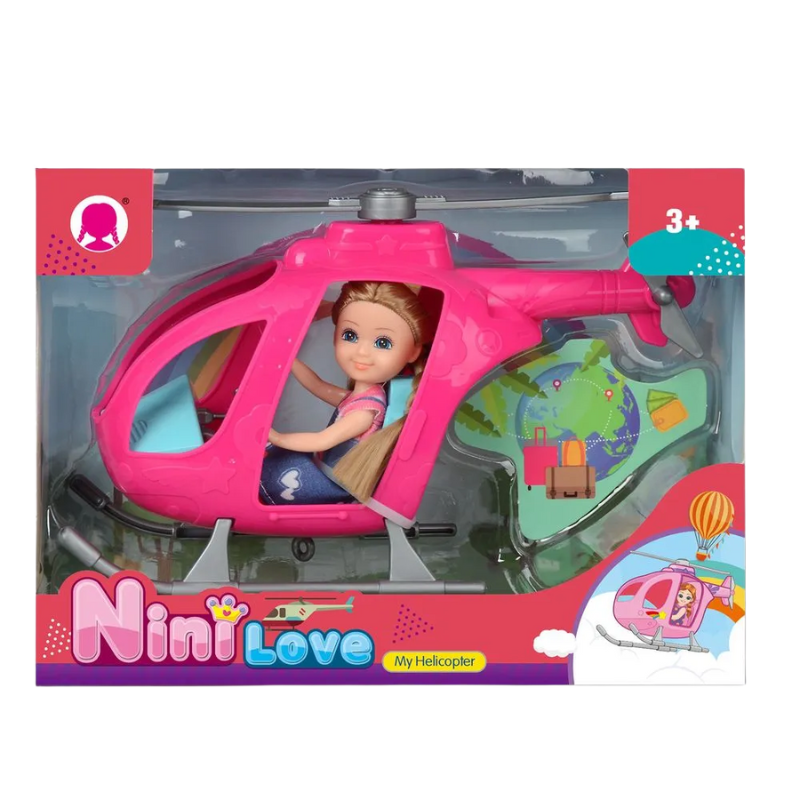 Plastic pink helicopter with doll