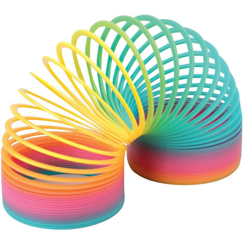 Small multi-coloured plastic slinky spring.
